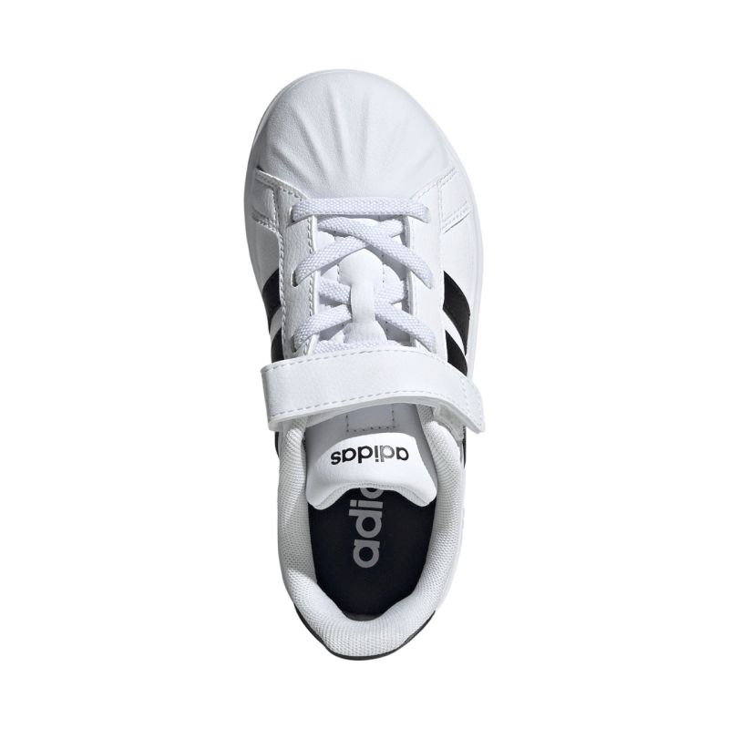 adidas Streettalk EL C JQ6144 Kids' Shoes. These adidas kids' shoes are designed for everyday wear. They feature a synthetic upper. A shell-shaped toe cap. A textile lining enhances comfort. They feature a hook-and-loop closure and elastic straps reminiscent of classic laces. Rubber outsole.