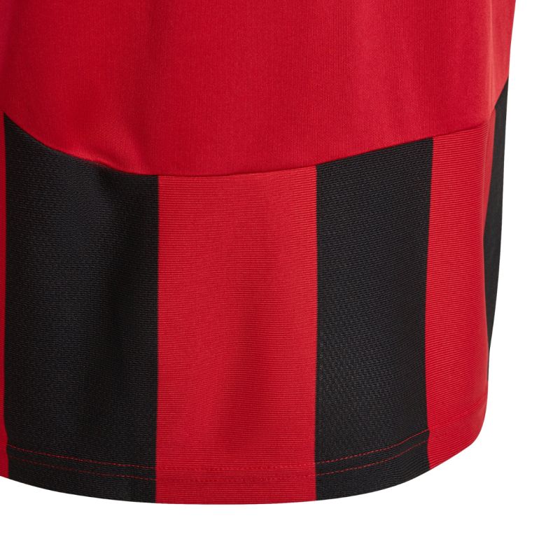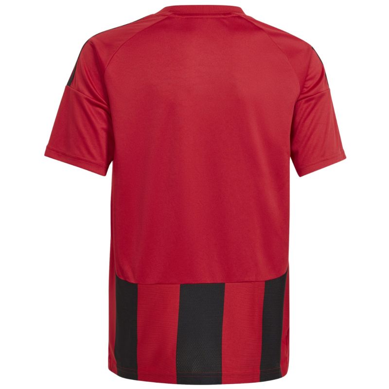 The adidas Striped 24 Kids' T-Shirt, Red and Black, IW2131, will keep your child comfortable at every match and school tournament. Quick-drying fabric with Aeroready technology wicks moisture away quickly. It features a standard fit with short sleeves. By choosing an adidas T-shirt made from recycled polyester, you're supporting the environment and its resources. The open areas on the chest, back, and sleeves allow you to add your child's name, number, and team name. Material: 100% recycled polyester.