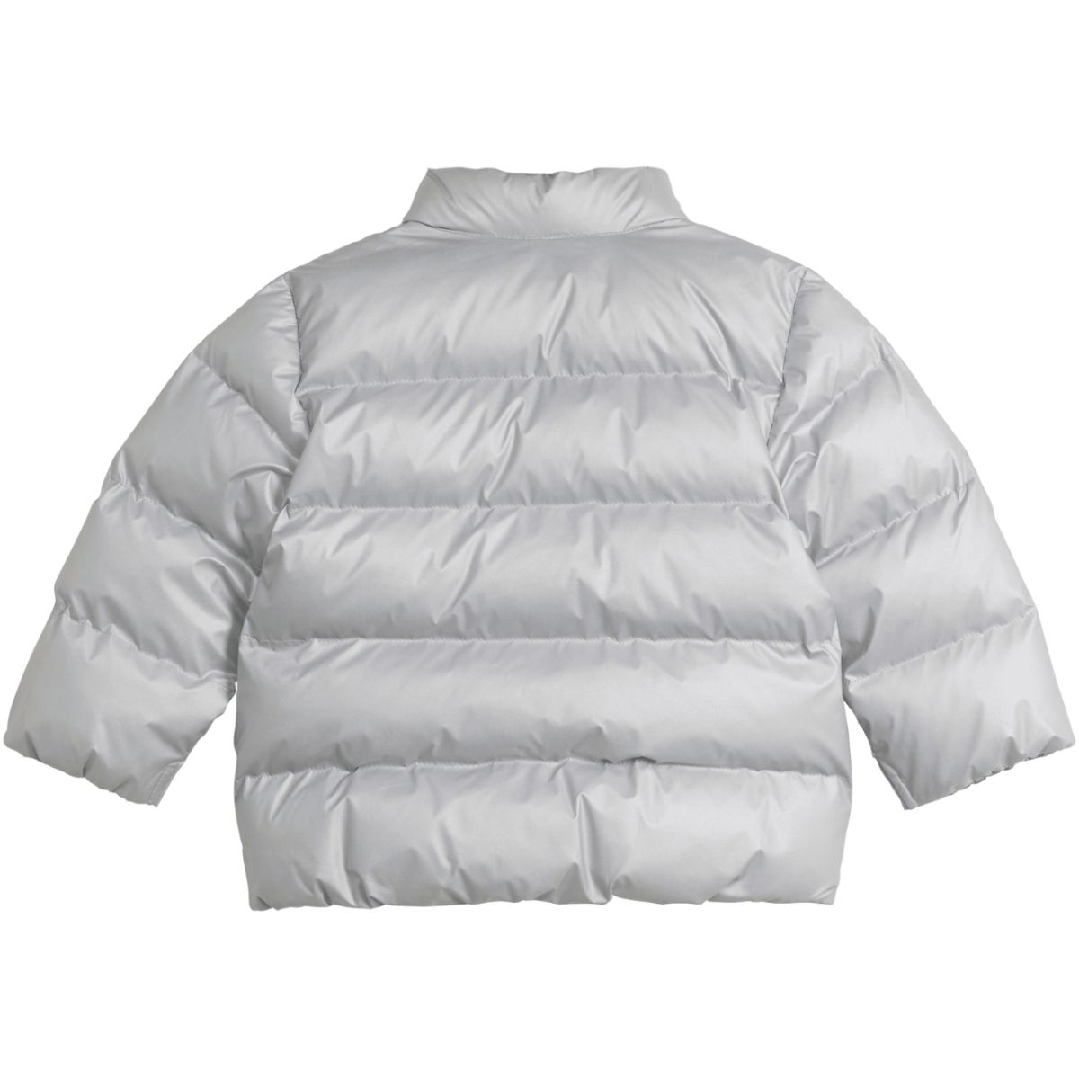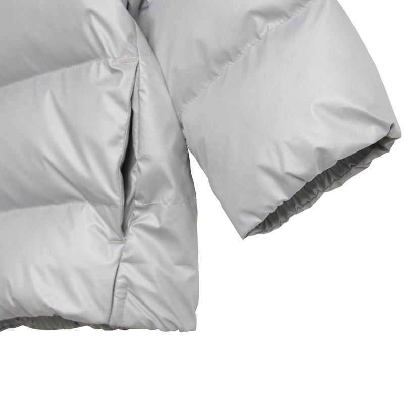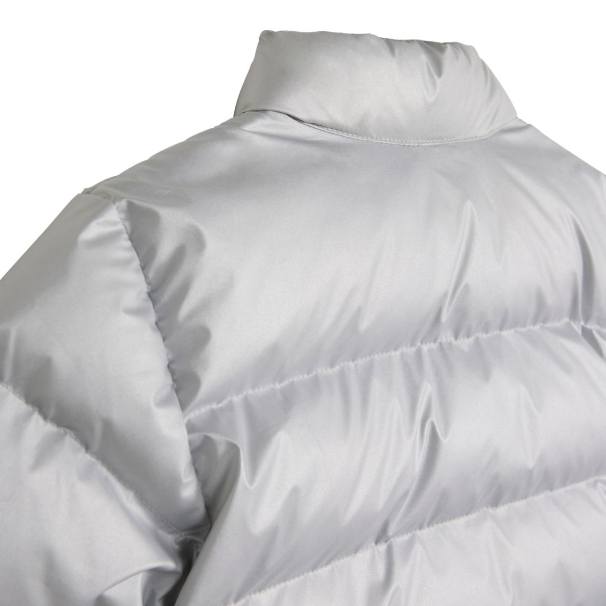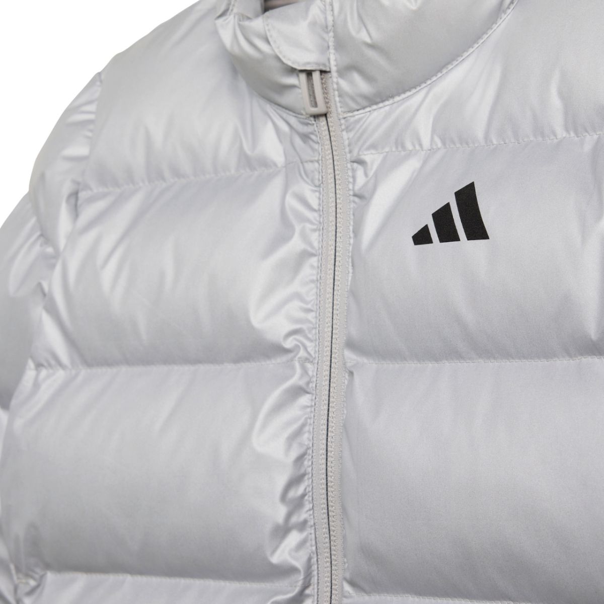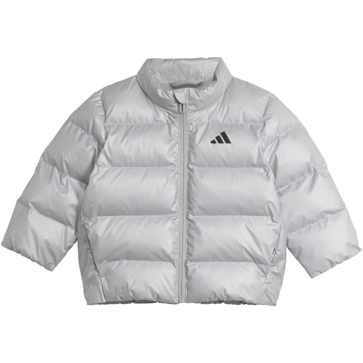 adidas Synthetic Down Glam Silver Kids' Jacket JM8870 This adidas kids' jacket is perfect for winter days. Standard fit. Synthetic fill arranged in horizontal panels, combined with Climawarm technology, wraps the body in warmth while wicking away excess moisture. A full-length zipper. A fixed, non-adjustable hood. An internal name tag allows you to personalize the jacket for your little one. Material: 100% recycled polyester