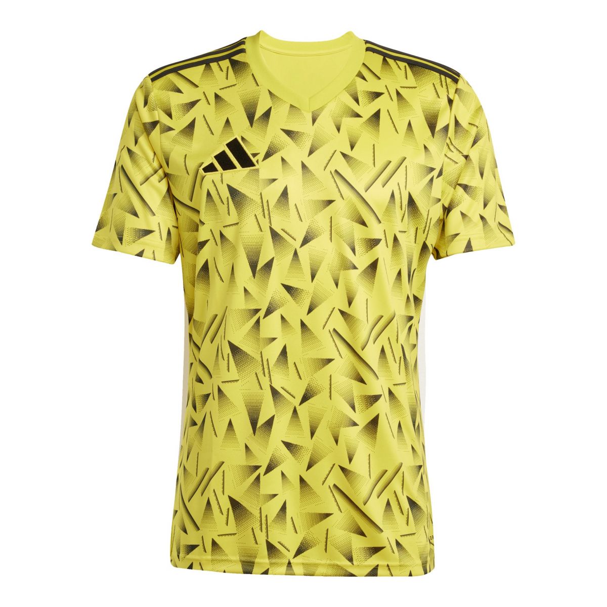 - The subtle geometric pattern on the front of this junior t-shirt harks back to classic adidas kits from the late 1980s.