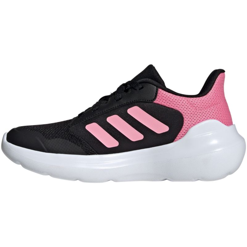 These adidas shoes for kids are perfect for running. They feature a textile upper reinforced with synthetic inserts. They feature a lace-up closure. They feature a lightweight Cloudfoam midsole with a raised profile. An EVA outsole provides grip. The shoes are partially made from recycled materials.