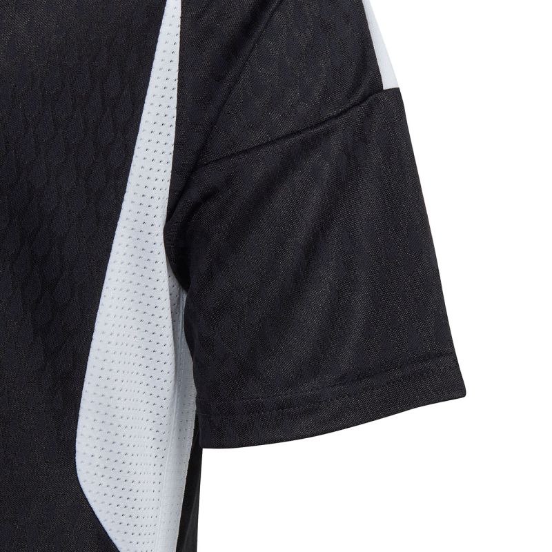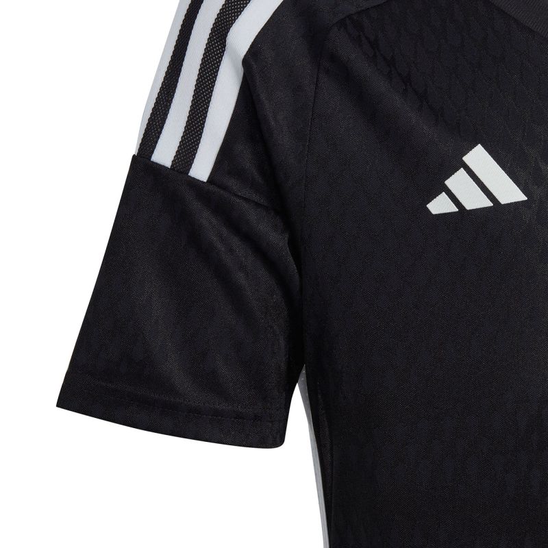 adidas Tiro 23 Competition Match Jersey for Kids, Black IC7461. This adidas kids' jersey is perfect for football matches. Regular fit. V-neck. Mesh underarm panels. Aeroready technology wicks away excess moisture. Recycled fibers. Material: 100% recycled polyester
