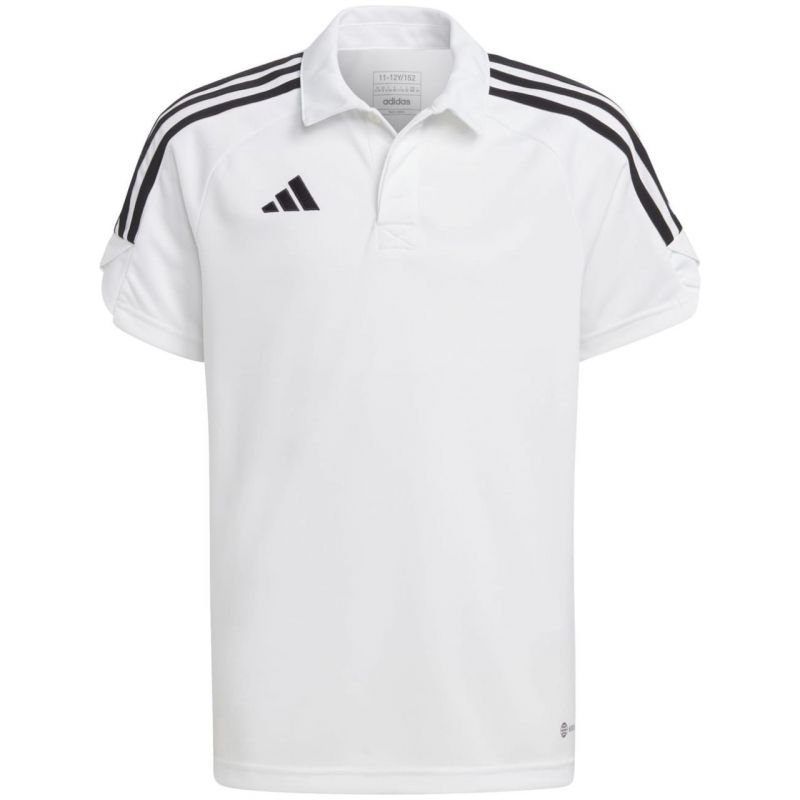 This adidas kids' jersey is perfect for cheering on the sidelines and traveling with the team to matches. It's part of the Tiro 23 collection. It features a collar and button placket. It's cut in a regular fit. The sleeves have small slits. Aeroready technology wicks away excess moisture. Material: 100% recycled polyester.