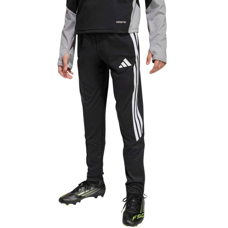 adidas Tiro 26 Competition Training Pants for Kids, Black and White KA5133. These adidas pants are perfect for training. The Tiro style is made from quick-drying, recycled fibers. They feature a slim fit with an elastic waistband and a drawstring. Zippered side pockets. Zippered leg openings. Formotion technology allows for unrestricted movement. Material: 100% recycled polyester.