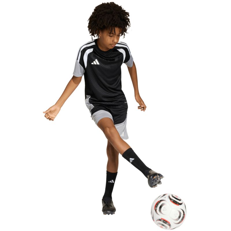 adidas Tiro 26 Competition Training T-Shirt, Black and Gray, KA7599. This adidas T-shirt is perfect for training and decisive matches. Regular fit. Mesh panels on the chest. Climacool technology absorbs and wicks away sweat. Recycled fibers. Subtle logo. Stripes on the sleeves. Material: 100% recycled polyester