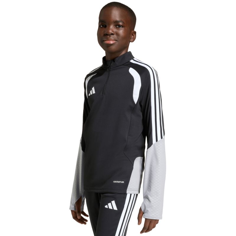 adidas Tiro 26 Competition Training Top for Kids, Black and Gray KA7572. This adidas football top for kids is perfect for training. Stand-up collar. The short zipper is finished with a chin guard. Slim fit. Formotion technology ensures even better mobility. Mesh panels on the chest. Straps on the upper sleeves. Thumbholes keep the sleeves in place. Embossed details on the shoulders and sides. Material: 100% recycled polyester