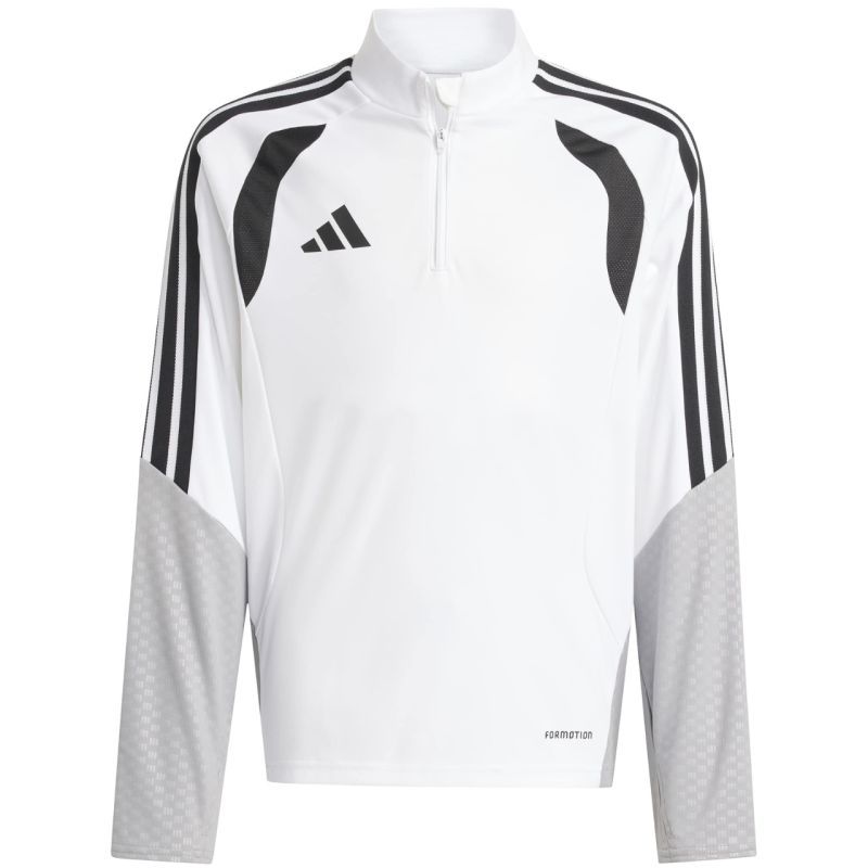 adidas Tiro 26 Competition Training Top for Kids, White and Gray KA7577. This adidas football top for kids is perfect for training. Stand-up collar. The short zipper is finished with a chin guard. Slim fit. Formotion technology ensures even better mobility. Mesh panels on the chest. Straps on the upper sleeves. Thumbholes keep the sleeves in place. Embossed details on the shoulders and sides. Material: 100% recycled polyester