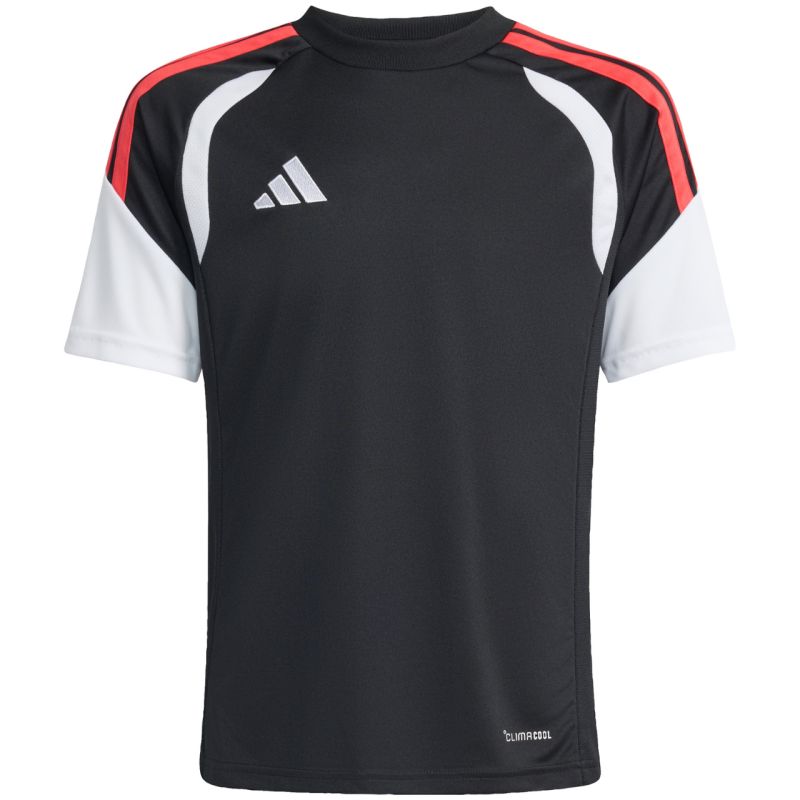 adidas Tiro 26 League Jersey for Kids, Black and Red KB1326. This adidas jersey for kids is perfect for football matches. Regular fit. Crew neck. Mesh panels. Climacool technology. Recycled fibers. Material: 100% recycled polyester