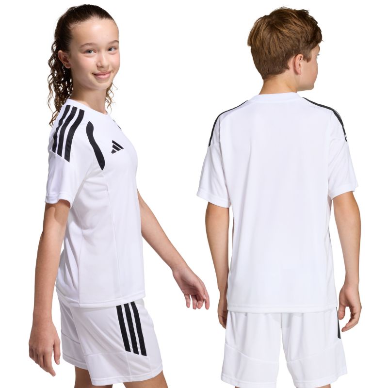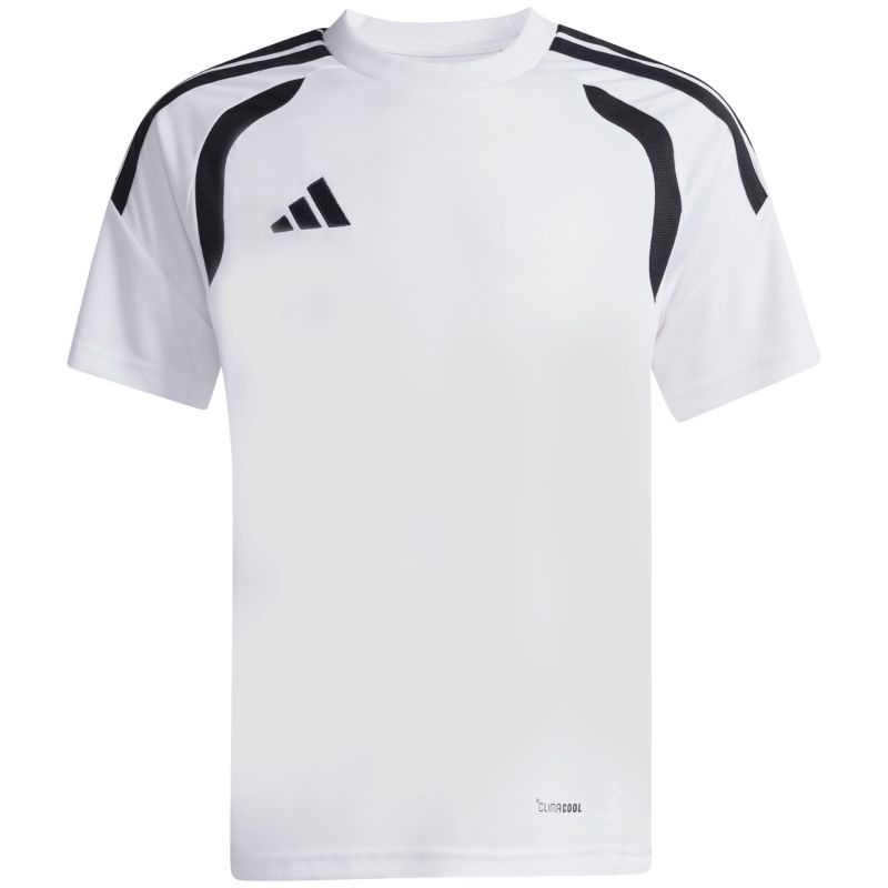 adidas Tiro 26 League Jersey for Kids, White, KB1312. This adidas jersey is perfect for football matches. Regular fit. Crew neck. Mesh panels. Climacool technology. Recycled fibers. Material: 100% recycled polyester.