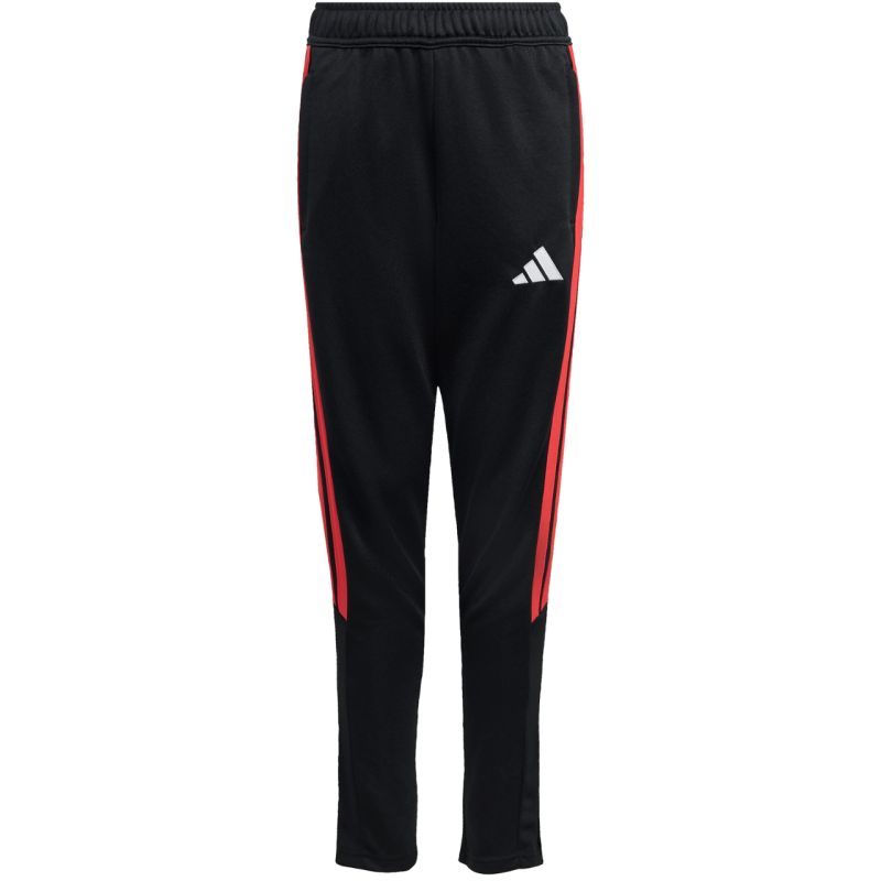 adidas Tiro 26 League Kids' Pants Black and Red JY9677 These adidas kids' pants from the Tiro football collection are perfect for training. Quick-drying fabric. Climacool technology. Regular fit. Mid-rise, elastic waistband with a drawstring. Side pockets with zippers. Zippered leg cuffs. Material: 100% recycled polyester