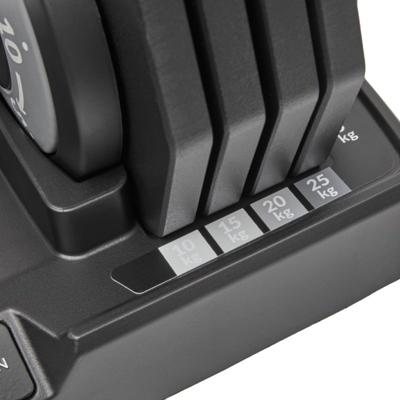 - With five weight adjustment levels – 5 kg, 10 kg, 15 kg, 20 kg and 25 kg – this sturdy dumbbell offers a wide range of training options, allowing you to effectively exercise your legs, arms, back, chest, shoulders and abdominal muscles.