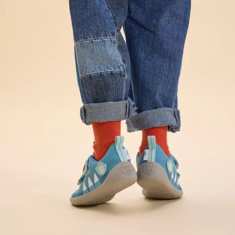 - Natural barefoot comfort: Affenzahn Lucky Shark shoes are designed according to the barefoot principle – with a thin, flexible sole that allows the foot to work naturally, supporting proper muscle development and motor coordination.