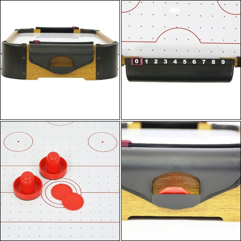 Measuring 51x31x10 cm, the wooden air hockey machine is easy to transport and store. It's perfect for smaller spaces like apartments or children's rooms.