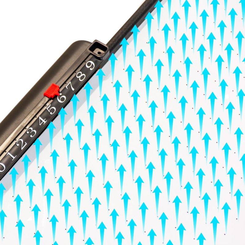 The table features a special, electrically powered fan that blows air through the perforated surface, slightly lifting the puck. This creates an effect similar to sliding the puck across a sheet of ice.