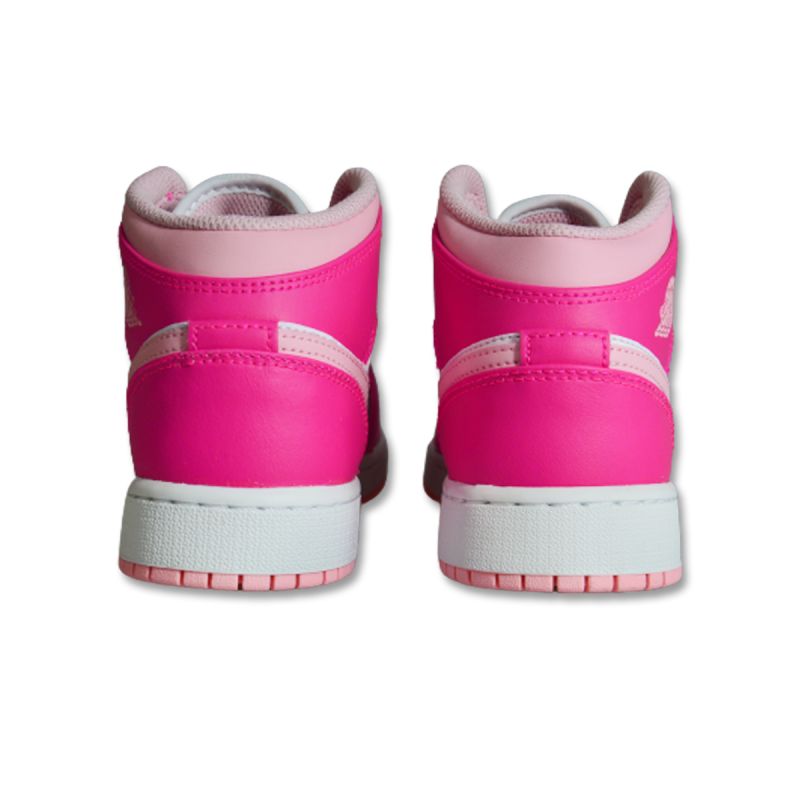 The Air Jordan 1 Mid GS Fierce Pink sneakers combine the unrivaled style of the Air Jordan brand with modern design, creating a kids' shoe that stands out on both city streets and school.