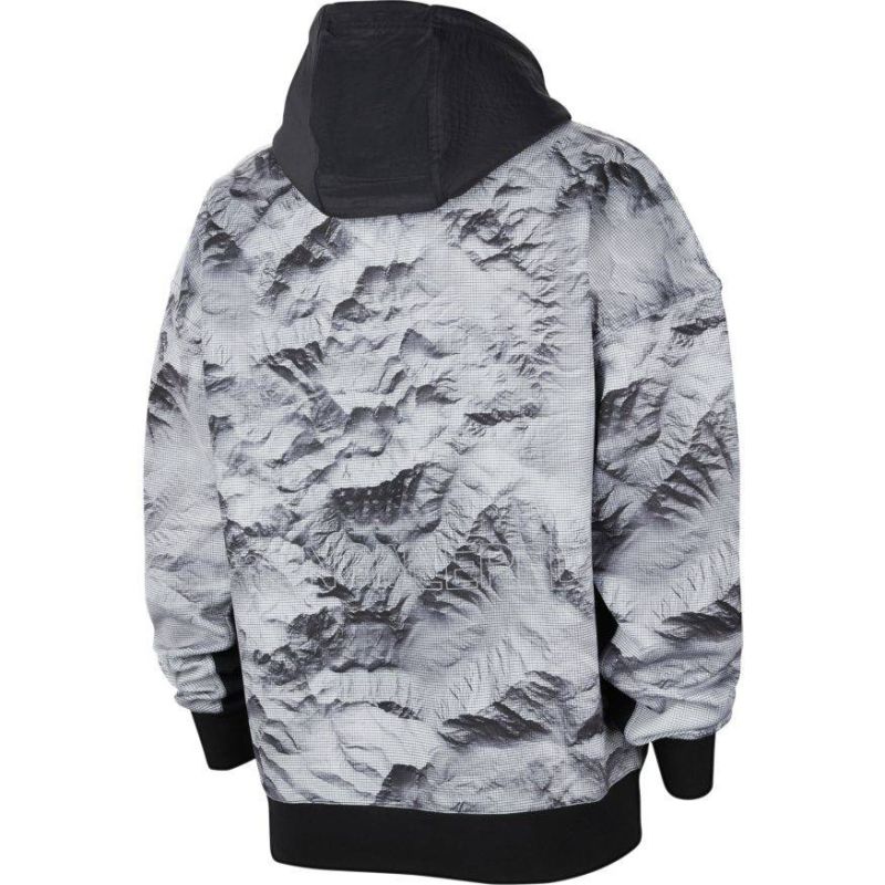 The entire surface of the sweatshirt features a graphic reminiscent of a mountain landscape.