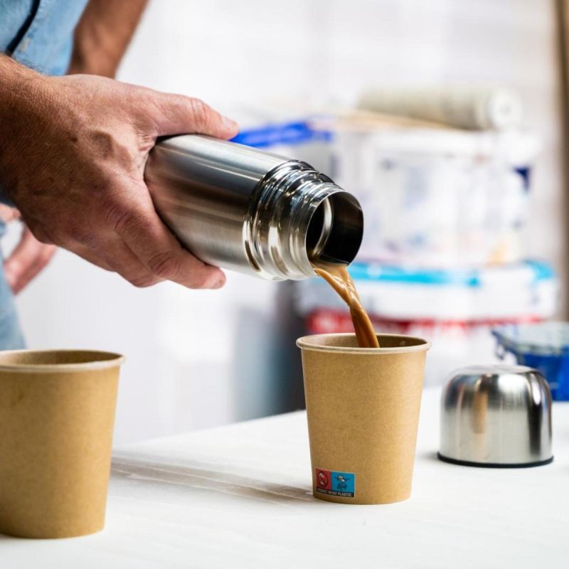 The thermos' capacity is ideal for everyday use. It holds two servings of hot coffee or tea – perfect for traveling or a break from work.