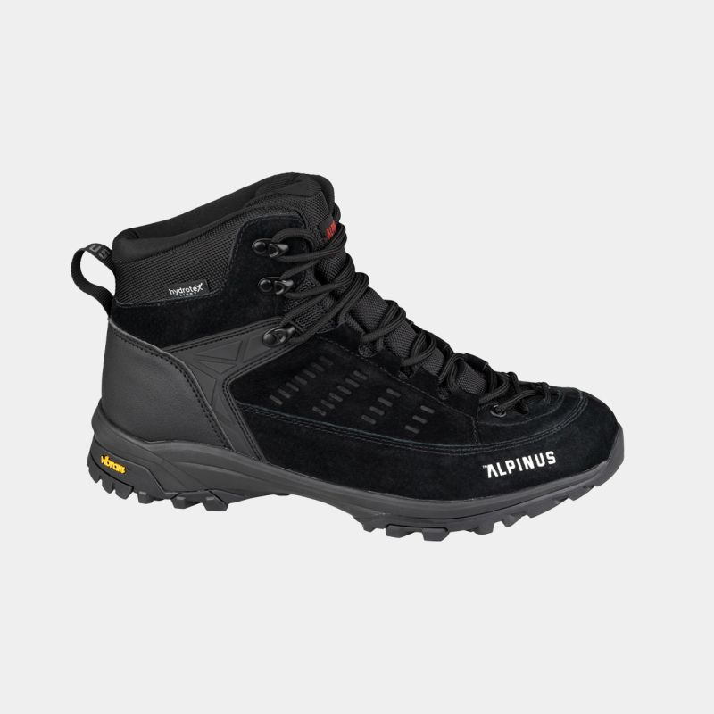 Alpinus Brasil Plus M men's trekking shoes black JS18659 Alpinus men's trekking shoes are designed for recreational hiking on easy and intermediate mountain trails. Key features: Specialized Ortholite® insole, which significantly improves breathability and moisture wicking; The Ortholite® insole compresses less than 5% throughout the life of the product, so cushioning and performance never change; Suede reinforcement along the entire length of the shoe protects the toes from damage; The high upper protects the ankle from injury; Soft, profiled collar; The grippy sole works well on slippery surfaces; Technical Hydrotex Light membrane; Alpinus Safety reflective element; Comfortable, low lacing system right up to the toes; The structure prevents sand and small stones from getting inside; Relatively low weight, approx. 950 g per pair.