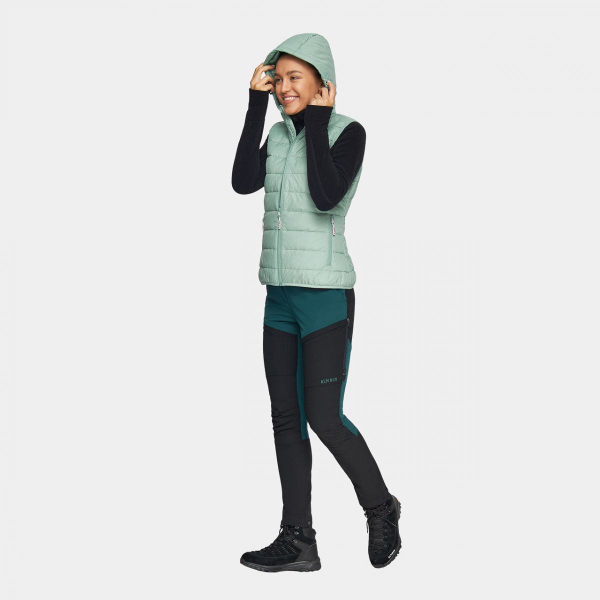 - The Alpinus Monza women's vest in mint color is a perfect choice for outdoor enthusiasts who explore not only mountain trails, but also wander the maze of city streets.