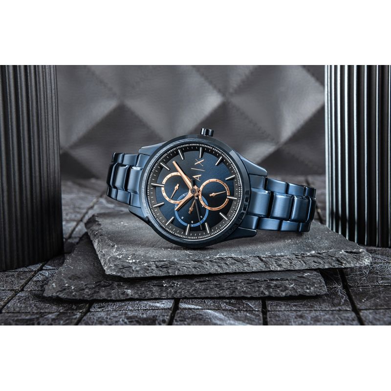 Armani Exchange watch bracelets, crafted from the highest quality stainless steel, combine rugged durability with eye-catching elegance. Their robust construction not only symbolizes reliability but also ensures that the watch will stay firmly on your wrist, no matter the challenges of the day. The precise, secure clasp features the A|X logo.