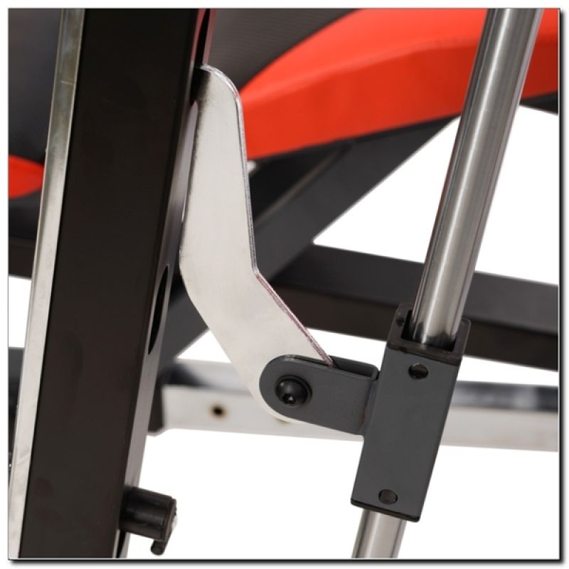 - The central element of the machine is a detachable bench – it can be removed from the set and used for standing exercises. This bench is largely responsible for training comfort, which is why it's equipped with a multi-stage seat and backrest adjustment mechanism. A durable foam padding and a modern, long-lasting carbon-pattern upholstery fabric also contribute to a positive user experience. Thanks to their properties, they effectively relieve the spine and stabilize its position, making even the most intense workouts effortless.