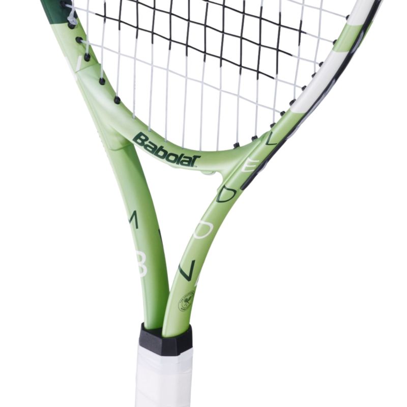 Babolat Wimbledon 25 Junior Mint Tennis Racket 140529 This Babolat racket is perfect for recreational tennis games. Designed for children. The design is inspired by the Grand Slam tournament - London's Wimbledon. The construction is made of aluminum. The handle has a factory overgrip. Technical data: Age: 9-10 years or height: 130-140 cm Handle size: L0 Material: aluminum Weight (unstrung): 220 g Racket length: 635 cm / 25 in String pattern: 16x19 in Balance: 31.5 Head area: 685 cm² / 106 in Grip: factory Pre-strung: yes Cover included: no