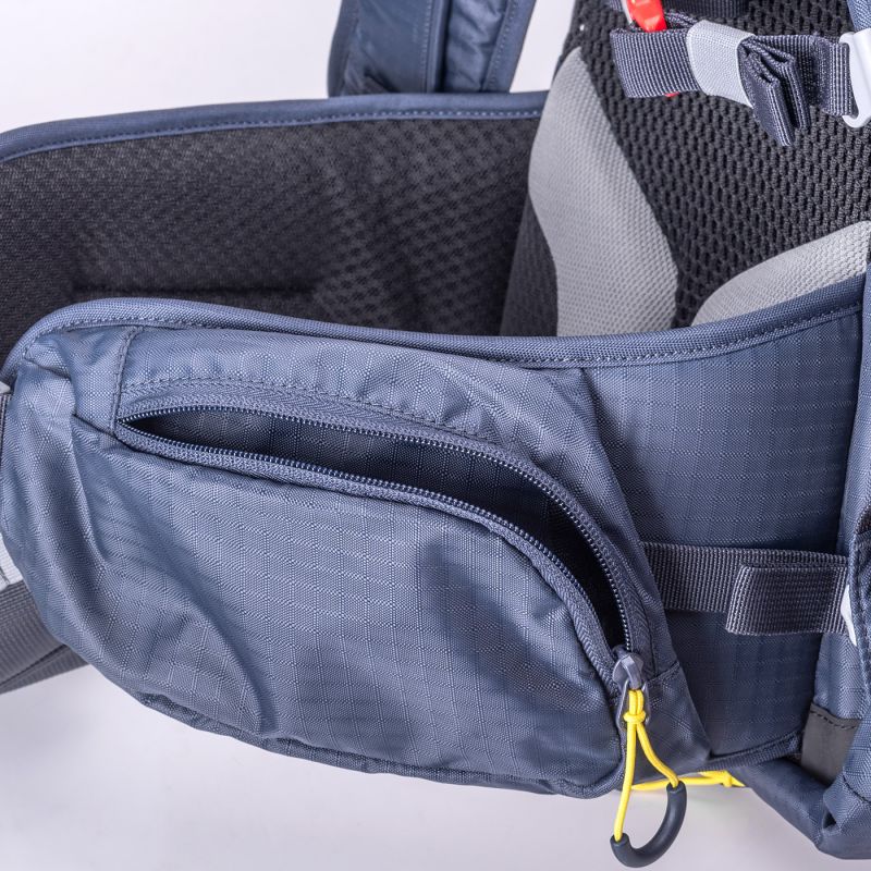 The TRIGLAV 40 by Elbrus is an ideal backpack for short trips. The spacious main compartment holds all your hiking essentials, which can be divided into main and lower compartments. This model features adjustable shoulder straps, an adjustable suspension system, and a back adjustment system, allowing for a personalized fit. The arched ventilation system ensures air circulation, keeping your back dry during exercise. The TRIGLAV 40 backpack can be fitted with a hydration system. Furthermore, this model features trekking pole straps , a rain cover, and a neck warmer to expand the volume of the compartment. Two mesh side pockets easily hold a water bottle or water bottle. These pockets have an additional, practical opening that allows you to remove the water bottle without removing the backpack. Side compression straps allow you to adjust the size of the backpack to fit the gear you're carrying. Additionally, the presented model has an additional pocket on the front and additional pockets in the flap.