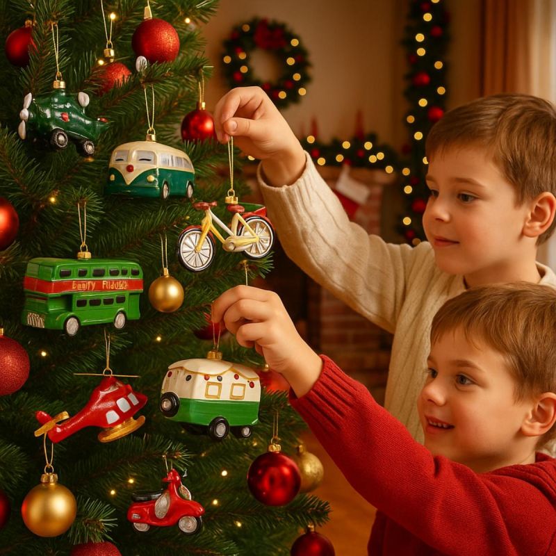 Unlike classic, round baubles, the unusual shape of the bauble—a camper van—attracts attention and makes the decoration unique. It's a great option if you want to distinguish your interior and surprise your guests.
