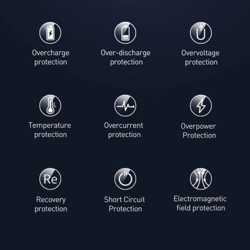 - Protections - the powerbank protects the phone against overvoltage, short circuit, overheating, and overcharging the battery.