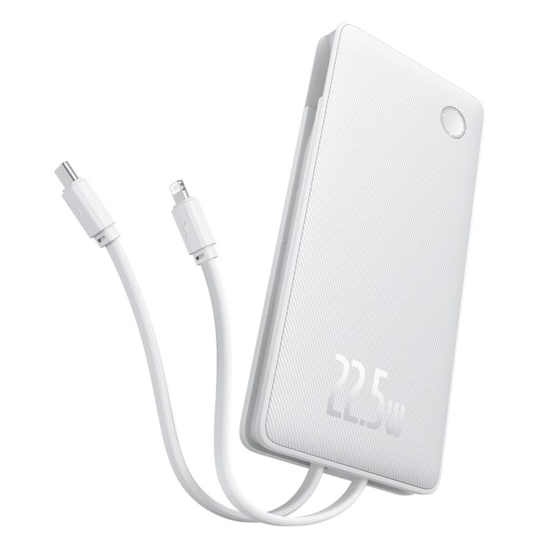 Baseus Airpow Lite 10000mAh 22.5W Power Bank with Built-in USB-C and Lightning Cables - White