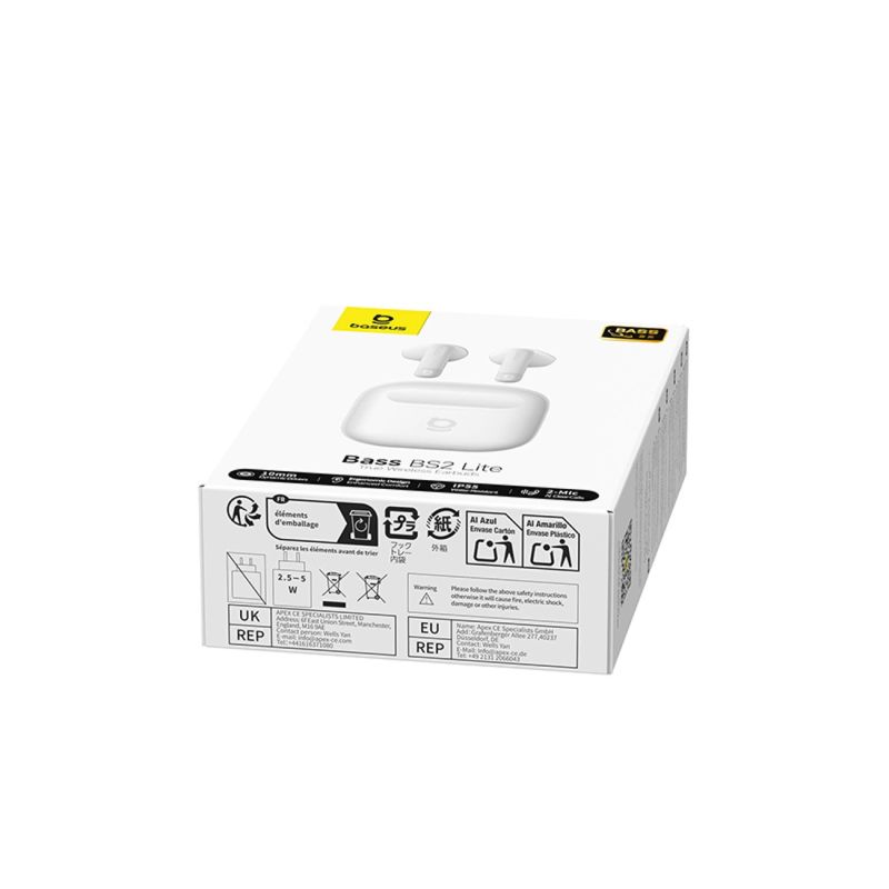 The Baseus Bass BS2 Lite headphones are lightweight and comfortable wireless headphones designed for everyday listening to music, watching videos, and making calls. A 10mm driver combined with SuperBass technology delivers clear, powerful sound with enhanced bass. The ergonomic semi-in-ear design fits snugly in the ear and promotes comfort even during extended use. Stable Bluetooth 6.0 connectivity facilitates quick pairing with mobile devices. This practical solution is perfect for those looking for simple, functional headphones for everyday use.