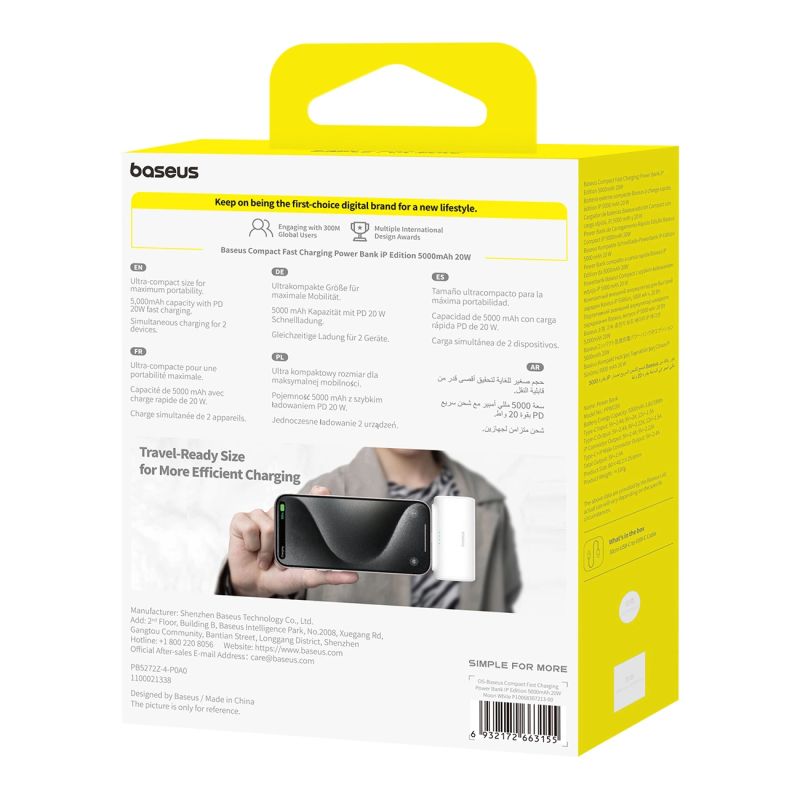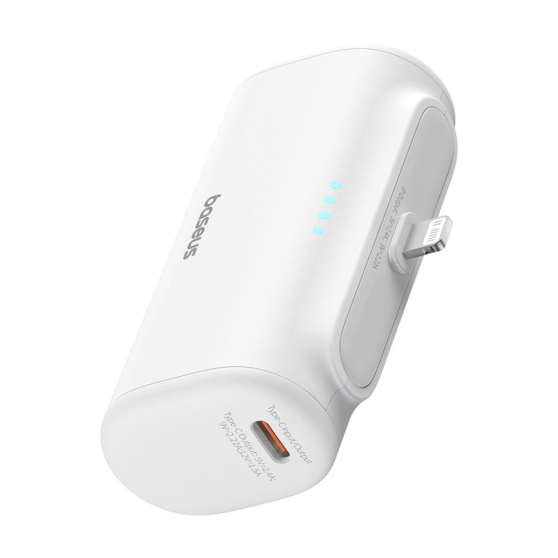 Baseus Compact 5000mAh 20W Powerbank with Lightning Connector and USB-C Socket - White
