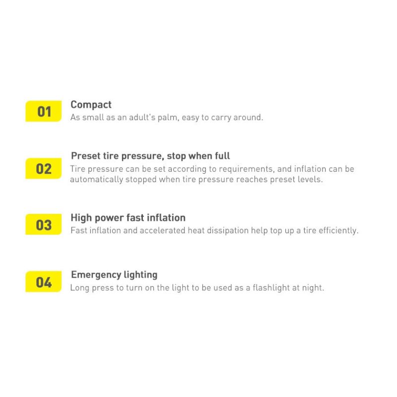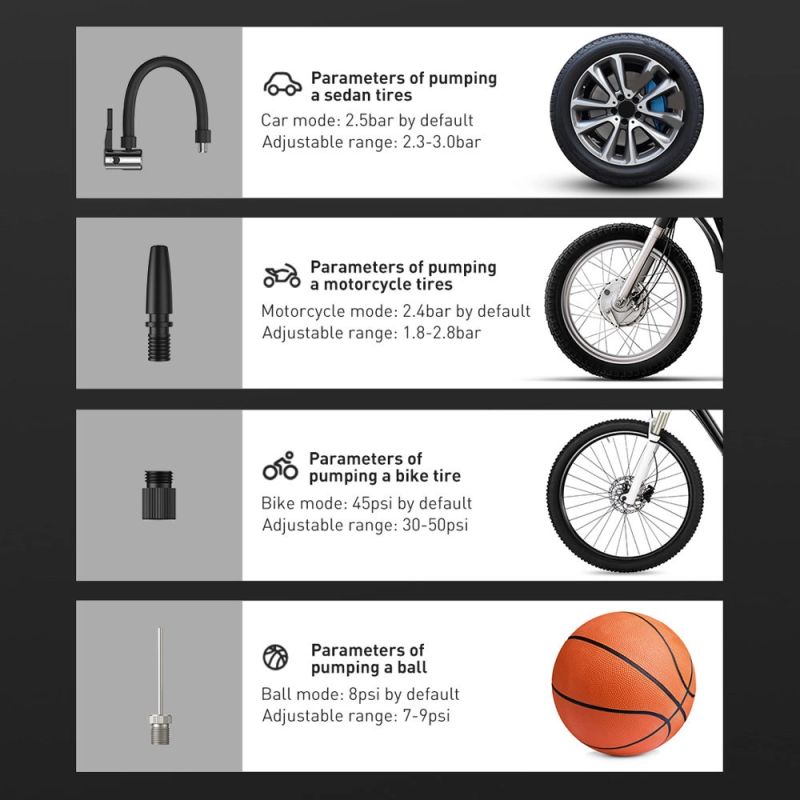 Tire pressure has a real impact on your safety and the safety of other road users. Check it and top it up if necessary. How? Do it yourself: in the driveway, parking lot or garage. With the help of the compact and handy Baseus Smart Inflator Pump. This is the pump that every driver should have! In just 0.1 seconds, it will check the air level in your tires, and it will take another 50 seconds to inflate them. It's just two simple steps! In less than a minute, you'll be ready to hit the road, regardless of whether you're going to the local supermarket or on a dream vacation out of town.