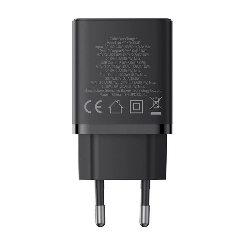 Baseus Cube Pro 30W USB-C USB-A Wall Charger - Black