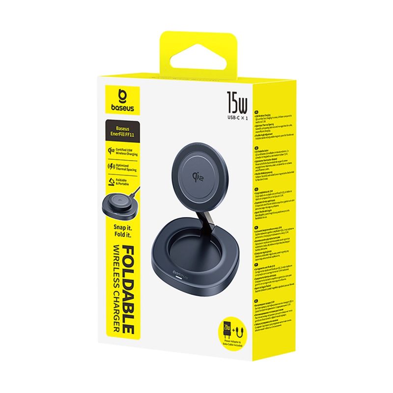 Baseus EnerFill FF11 15W Foldable Inductive Charger with 20W Wall Charger and 1m USB-C Cable - Black
