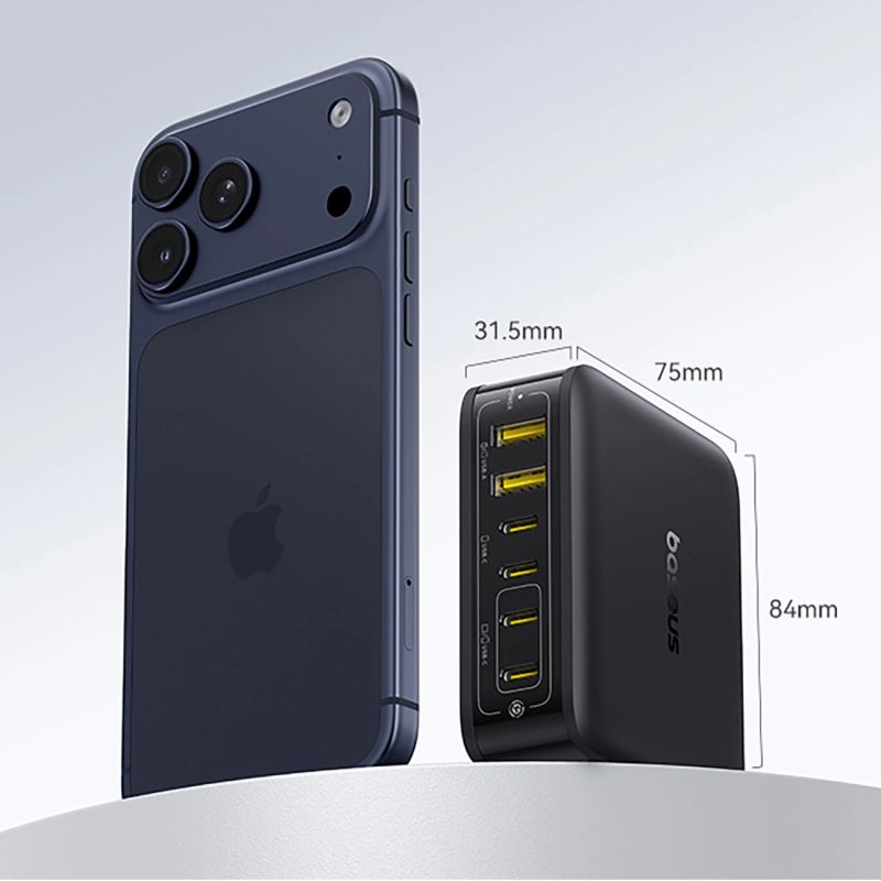 The Baseus EnerFill FH21 is a compact 120W charging station equipped with four USB-C ports and two USB-A ports. Thanks to GaN technology and an intelligent power distribution system, it can simultaneously charge up to six devices – a laptop, tablet, smartphone, and accessories. The aluminum construction aids heat dissipation, and a six-level security system protects connected devices.