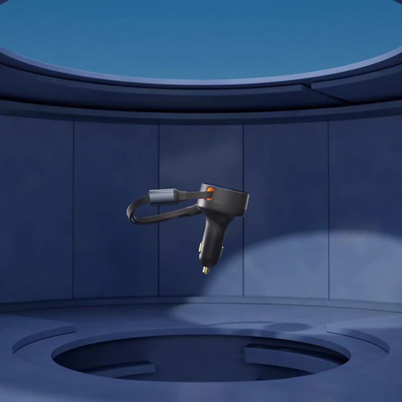 The Baseus Enjoyment Pro 55W is a functional car charger with a USB-A port and a built-in, retractable 70 cm Lightning cable. It supports fast charging with a total power of up to 55 W, allowing you to power two devices simultaneously. The automatic cable rewind mechanism helps keep your car tidy, and compatibility with 12-24 V systems makes the device suitable for both passenger cars and trucks.