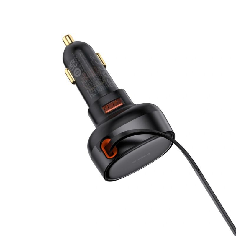 Baseus Enjoyment Pro 55W USB-A Car Charger with Retractable Lightning Cable - Black