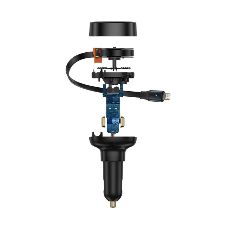 The built-in 70cm Lightning cable extends to the required length and automatically retracts when charging is complete, keeping your car interior tidy.