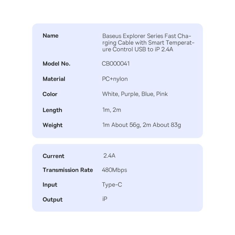 Baseus Explorer Series cable USB - Lightning 2.4A 2 m white (CATS010102)