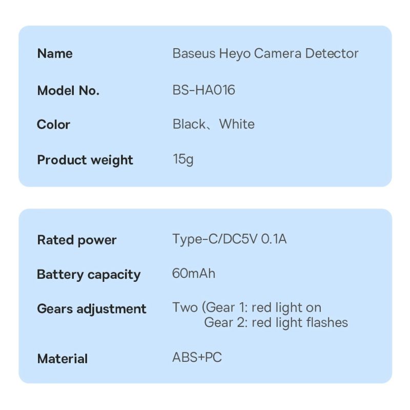 - Name: Baseus Heyo Camera Detector