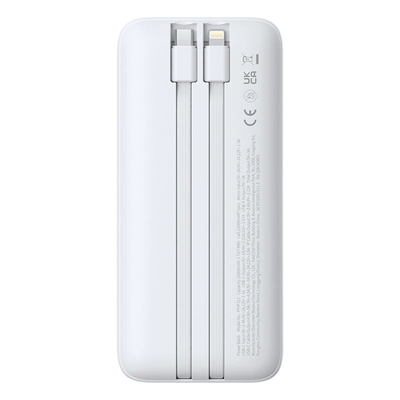 Baseus Lipow 20000mAh 22.5W Powerbank with Two Built-in Cables – White