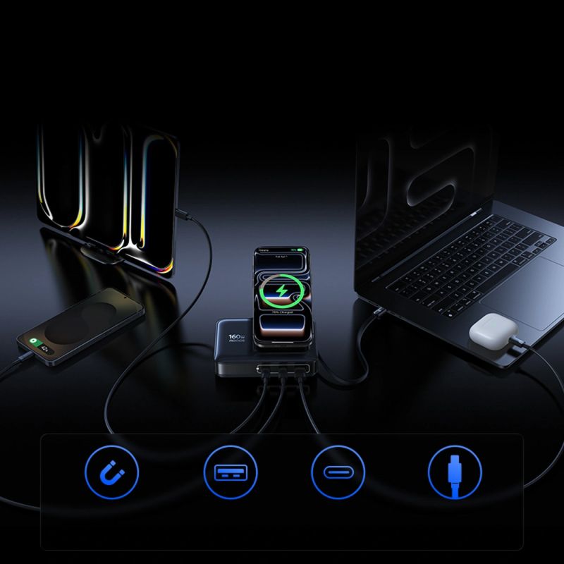 - Up to 160W of power: Charge multiple devices simultaneously without losing performance.
