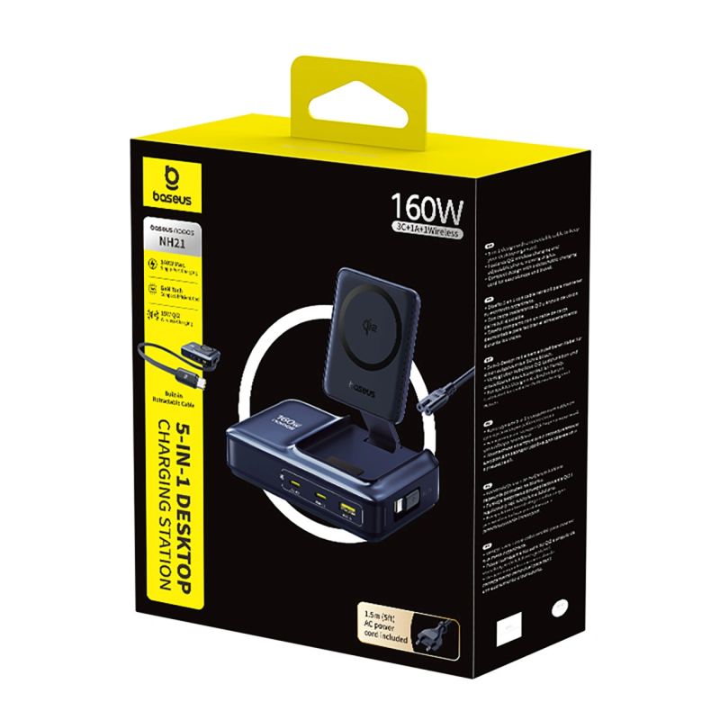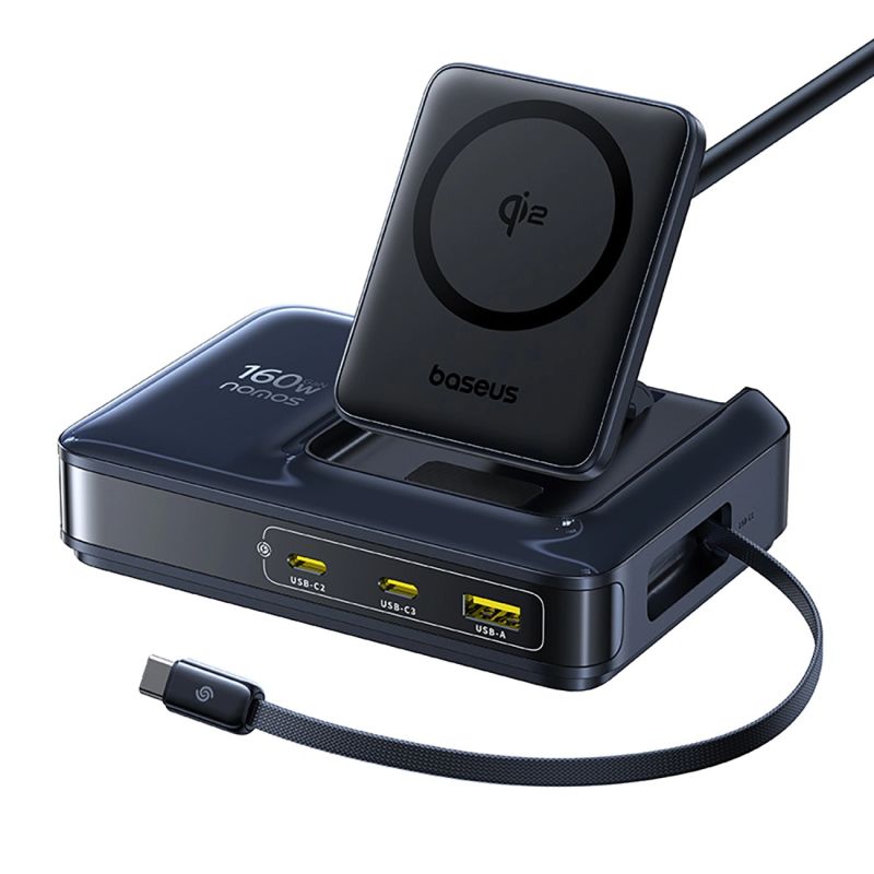 Baseus Nomos NH21 Qi2 160W 5-in-1 Wireless Charging Station with Retractable Cable - Black