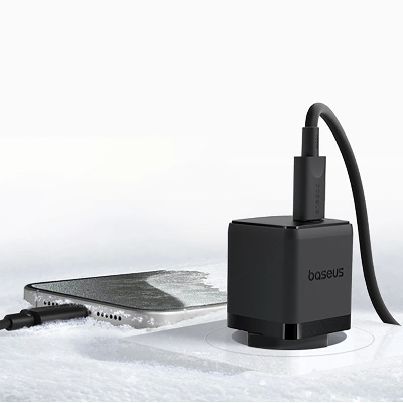 Baseus Palm 1C 20W Wall Charger (with Baseus Mini White USB-C 60W (20V/3A) 1m Cable) - Black