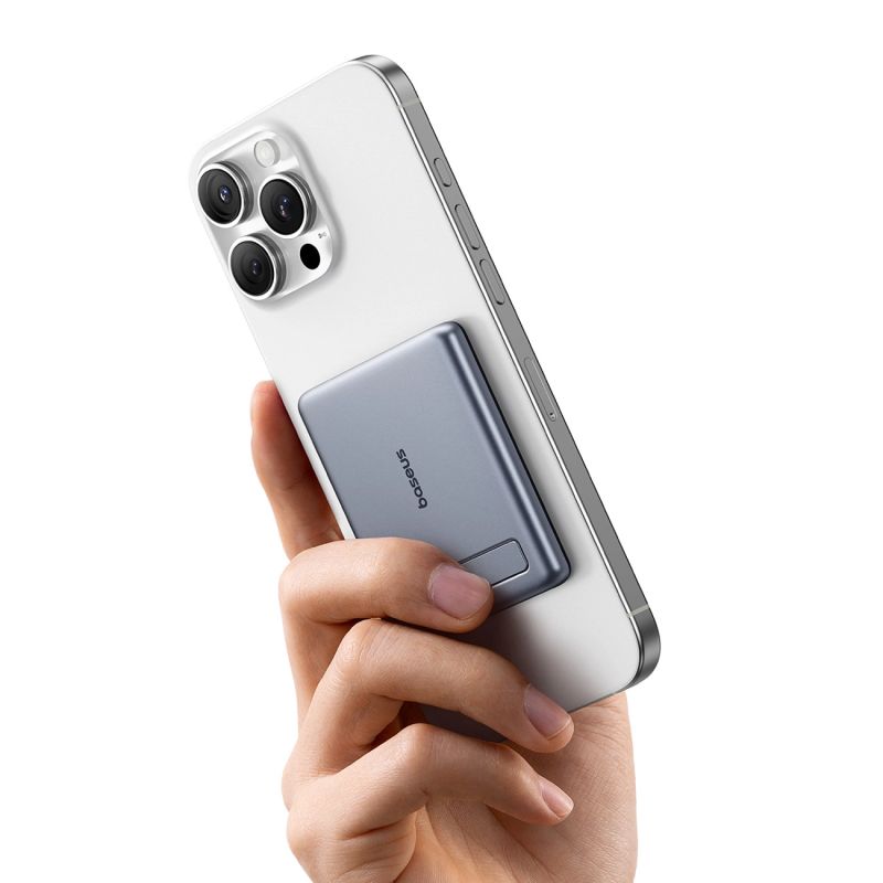 Baseus PicoGo AM31 Qi2 5000mAh 20W Ultra-Thin MagSafe Compatible Power Bank with Stand – Gray