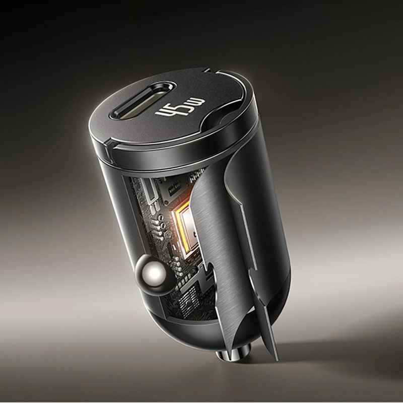 The Baseus PrimeTrip VP2 is a compact car charger designed for fast and convenient charging on the go. Up to 45W of power efficiently powers smartphones, tablets, and other mobile devices. The USB-C port supports multiple voltage levels, increasing compatibility with a wide range of devices. The included USB-C cable allows you to start charging immediately. The compact design fits seamlessly into your vehicle's interior. This solution streamlines charging while driving and increases user comfort.