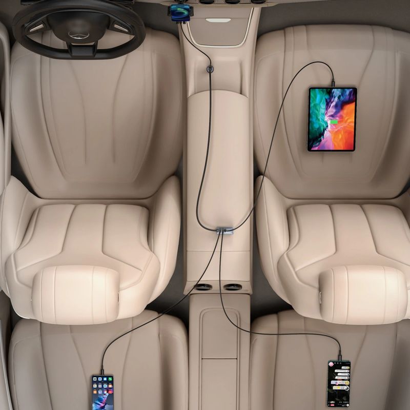 The Baseus Share Together 120W car charger is designed to simultaneously power multiple devices while traveling, offering high power and convenient cable management. Four output ports allow you to charge multiple devices simultaneously, making it ideal for both daily commutes and longer trips. The clever design with an additional module allows for comfortable use by rear seat passengers. Stable operation and security features ensure the safety of connected devices. This functional solution is perfect for those who want to keep their devices organized while charging on the go.