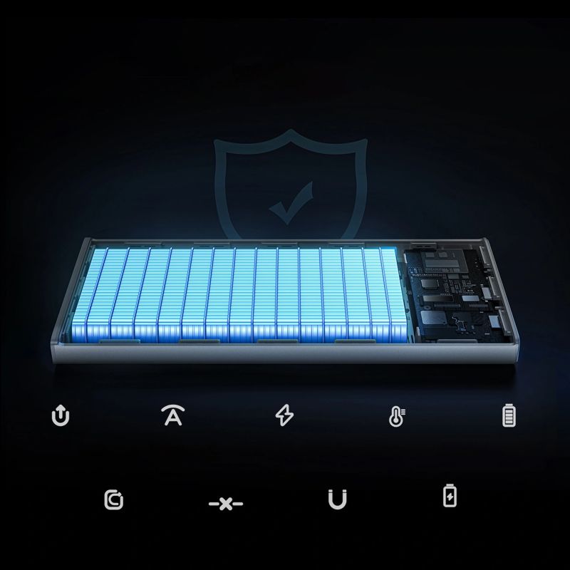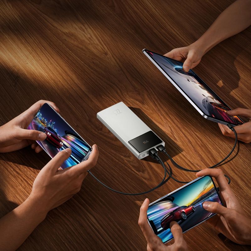 Thanks to three output ports, the powerbank allows you to power several devices simultaneously, which is useful when traveling and during an intense workday.