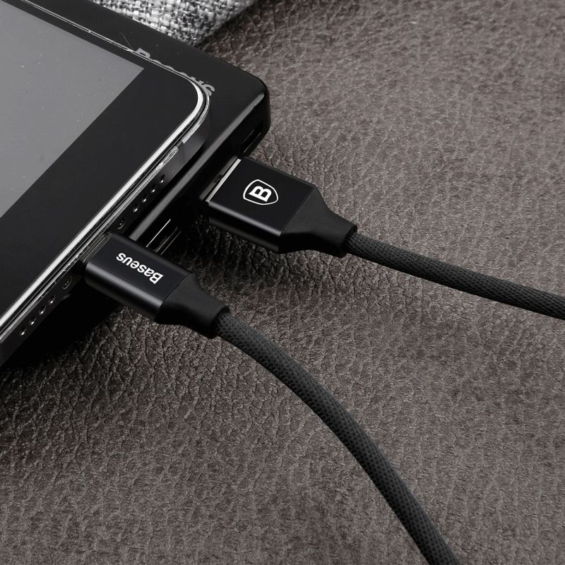 The Baseus Yiven cable is a practical cable for charging and transferring data for devices with a MicroUSB connector. It features a durable fabric braid that increases resistance to wear and tear and frequent bending during everyday use. The aluminum alloy connectors are durable and rust-resistant. The cable supports data transfer rates of up to 480 Mbps, facilitating fast file transfer. It's suitable for charging MicroUSB devices such as phones, tablets, and power banks, as well as for transferring data between devices.